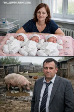 Behind him came Emily, radiant, holding the hands of three identical little children.