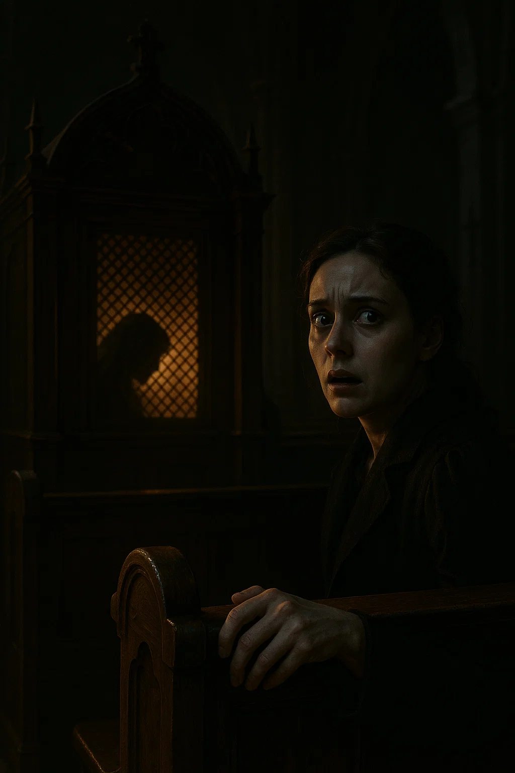 I slipped into the church to escape the noise of the world. The heavy wooden doors creaked as I pushed them open, and immediately, the air felt different—cool, still, sacred. I’d come seeking silence, the kind of silence that presses against your skin and fills your chest with something like peace. The sanctuary was empty. Candles flickered by the altar, their flames bending as if whispering secrets. I slid into the back pew, closed my eyes, and let the quiet wrap around me. For a moment, it was just me, the faint smell of incense, and the old wooden beams above that had held prayers for centuries. And then I heard it. A voice. Faint, trembling, seeping through the lattice of the confessional booth at the side of the church. I froze. The church was supposed to be empty. I wasn’t supposed to hear anything. But the words drifted out, raw and breaking: “Forgive me, Father, for I have sinned…”