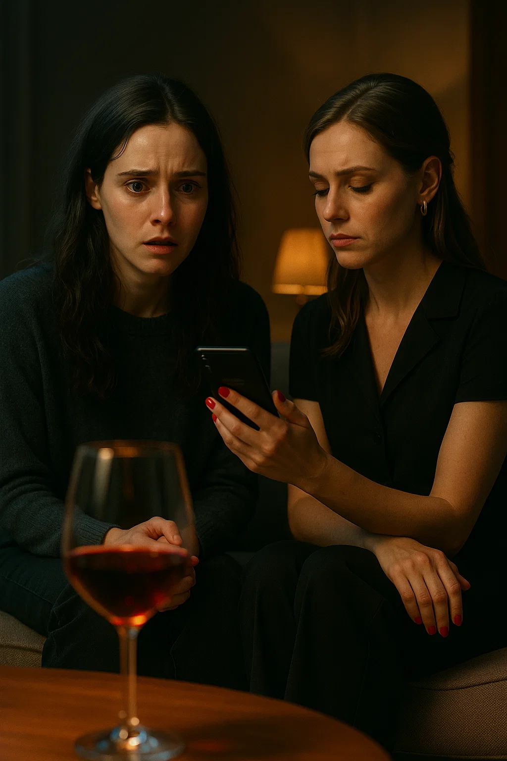 Her lips trembled, but she looked anywhere except at me. The lamp. The framed photo on the wall of us at fifteen, arms linked, laughing with braces and bad hair. The wine glass on the table half-filled with Merlot. Finally, her eyes found mine, and there it was—guilt, raw and heavy.