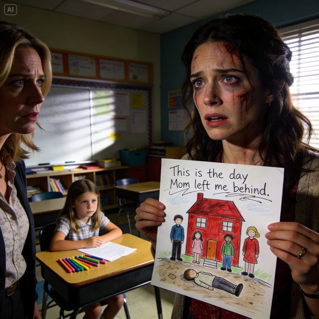 My daughter started drawing the same red house over and over again for weeks, even though we had never lived anywhere like that. At first, I thought it was just a child’s imagination, until her teacher sent me a new picture and said my daughter had cried a lot after finishing it. In front of the red house were four people. Three were standing. One was lying on the ground. And above them, in messy handwriting, she had written: “This is the day Mom left me behind.”