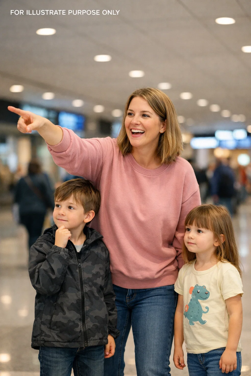 The morning of the trip, I was practically vibrating with joy as we got to the airport. That is, until I saw Melissa, Derek, and the kids waiting at the gate—matching Mickey Mouse backpacks, travel pillows, and Mason already wearing a glittery pair of Mickey ears.
