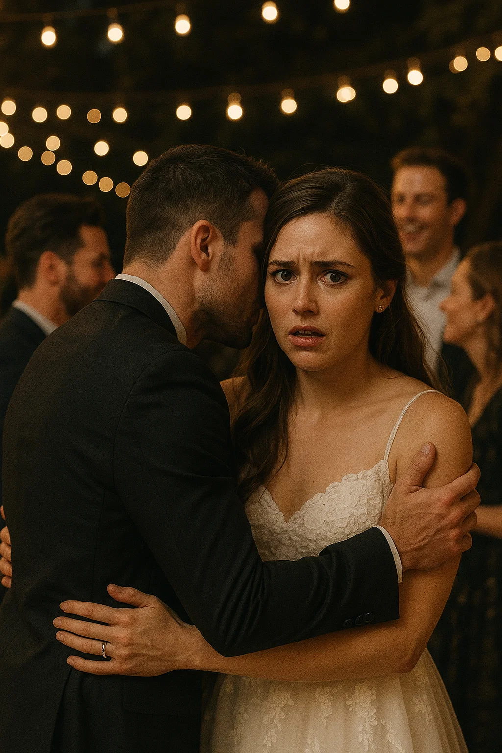 The reception was loud with clinking glasses, music, and laughter, but when Daniel—the best man—pulled me into a hug, the world seemed to stop. His arms were steady, his voice low, and what he whispered in my ear made my skin crawl. “He doesn’t deserve you. Not after what he did.”
