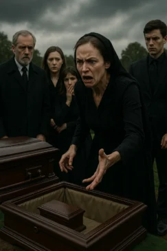 That answer only made things worse. My mother’s grief twisted into rage. “So anyone could have walked in and stolen from my husband’s coffin?” she snapped, her voice rising enough to silence the murmurs around us.