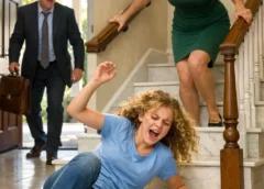 Just in time to see his twelve-year-old daughter falling backward down the stairs.