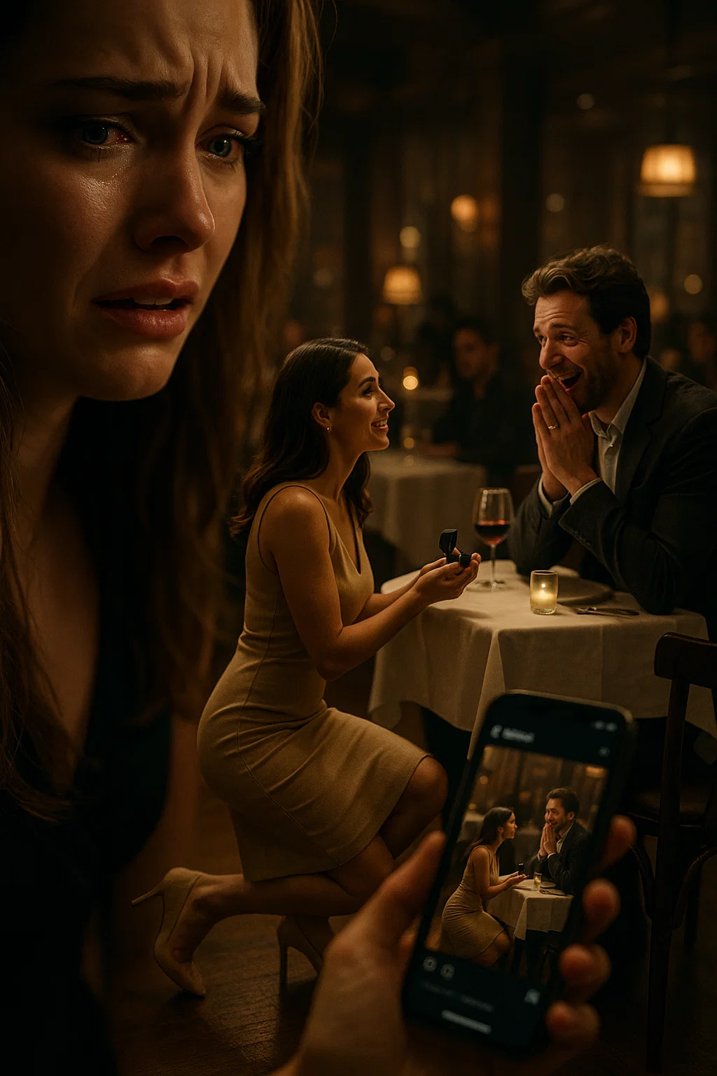 The next evening, scrolling mindlessly through Instagram, I froze. There it was. A photo posted by a mutual friend: Hannah on one knee in a crowded restaurant, holding a ring box toward a man whose face I knew better than my own. My ex. The man I’d loved for three years, the man I thought I’d marry. The caption read: She said yes!