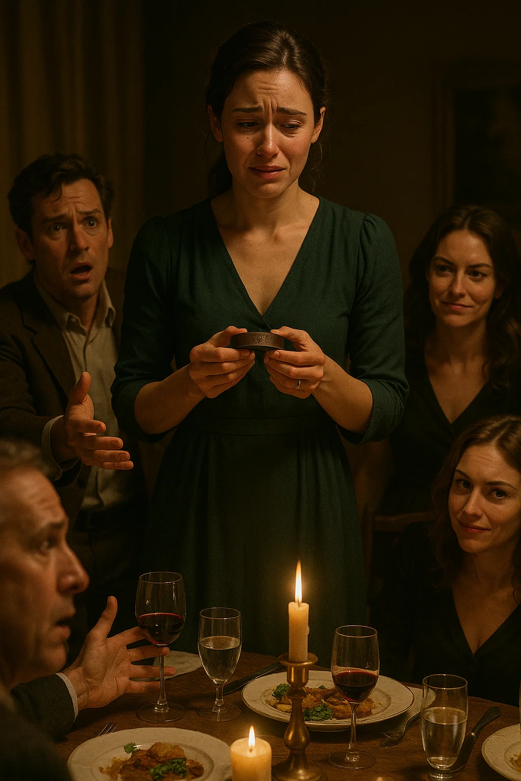 The table went quiet, all laughter collapsing into an awkward silence. Everyone’s eyes darted between us, forks frozen mid-air. My husband’s face drained of color, his lips parting but no words coming out.