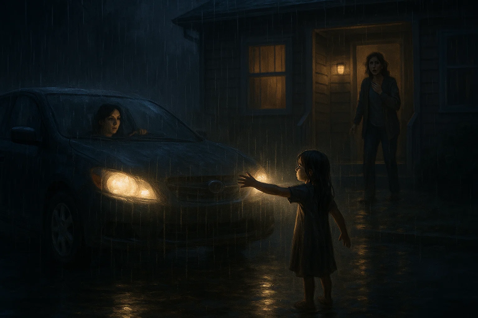 The car’s interior smelled faintly of vanilla and leather. I settled into the passenger seat, grateful for the warmth. We exchanged small talk as she drove—weather, traffic, nothing remarkable. I thought little of it until we pulled up to my house, where the porch light glowed faintly against the storm.