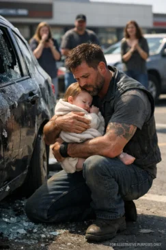 She couldn’t have been more than a year old, her tiny body limp against his chest, cheeks flushed an unnatural red, lips dry and slightly parted. For half a second, the entire parking lot froze, reality stalling as everyone tried to recalibrate.