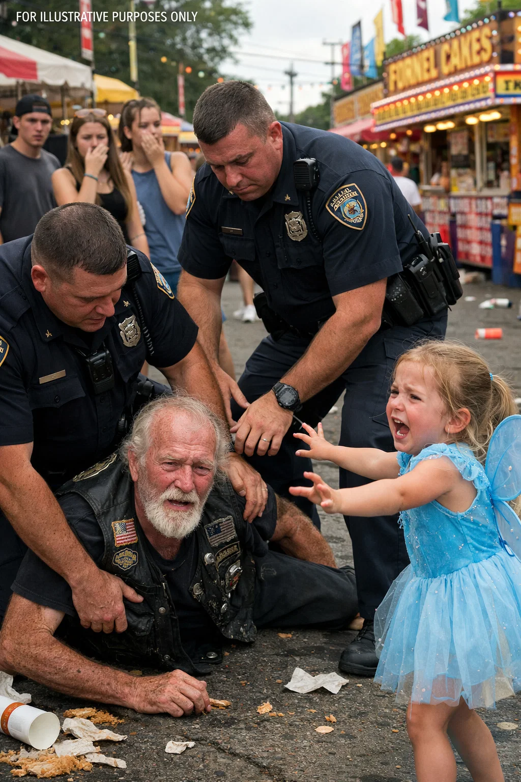 My daughter’s scream cut through the noise of the county fair like a siren, sharp enough to stop every heartbeat in its path. “That’s my grandpa!” she cried, her tiny fists pounding against the arms of the police officers who were pinning my father to the ground.