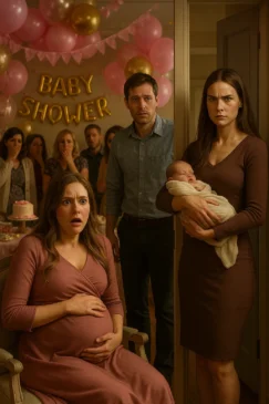 The pastel balloons, the towers of cupcakes, the pink-and-gold streamers—all of it was supposed to celebrate my baby. I was seven months pregnant, glowing—or so everyone kept saying—sitting in the middle of the living room surrounded by gifts and laughter. My husband hovered protectively near me, beaming as if he had created the whole party himself. And then the front door opened. The music dimmed, the chatter froze, and in walked his ex. Cradling a newborn in her arms.
