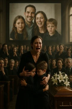 The chapel was filled with the soft hum of sorrow. White lilies lined the altar, their perfume heavy in the air, and the casket lay at the front, polished and still. Family and friends filled the pews, whispering memories, dabbing at tears. I sat in the front row, my black dress clinging to me like armor, my hands clutching a crumpled tissue. It was my husband’s funeral. My children sat beside me, their faces pale, eyes hollow. I thought the hardest part of this day would be saying goodbye. But the truth hadn’t even begun to unravel yet.