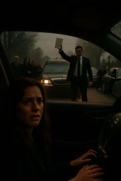 The hearse moved slowly down the winding road toward the cemetery, the long line of cars following like shadows. I sat in the front, clutching tissues, my chest heavy with grief. My father was gone, and this procession was supposed to be our final journey with him. But just as we neared the gates, a man in a dark suit stepped into the road, forcing the line to halt. He raised his hand firmly, and when he spoke, his words cut through the still air like a blade: “I need to be heard. I am included in the will. I am his child.”