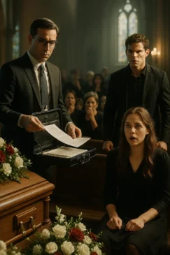 For a moment, no one moved. The coffin lay at the front, surrounded by lilies and roses. My mother’s shoulders were trembling, though whether from grief or rage I couldn’t tell. The service was supposed to end with quiet dignity. But dignity evaporated the second the man introduced himself: “I’m Mr. Carter, Mr. Hale’s attorney. And I carry his most recent will.”