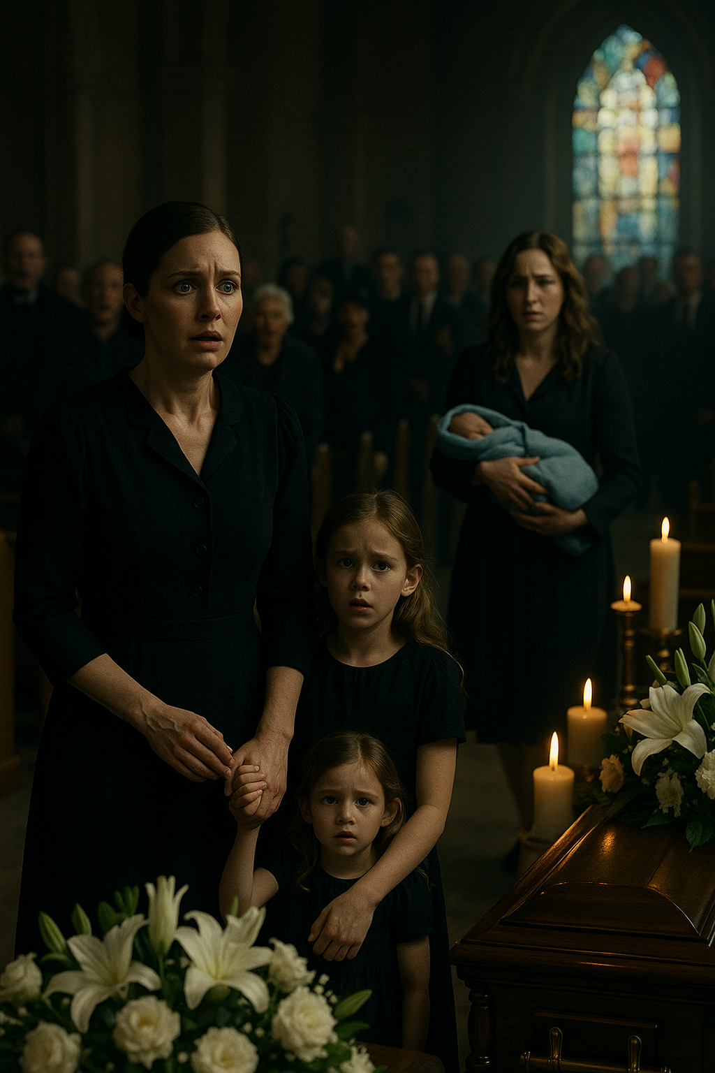 Pastor Miller had just begun the eulogy when the doors swung open. Heads turned. A woman stepped inside, pale and trembling, clutching a bundle wrapped in a soft blue blanket. The baby’s tiny cry pierced the silence, echoing through the sanctuary.