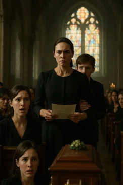 The church was so quiet I could hear the scrape of my own breathing. My father’s casket rested at the front, polished wood gleaming under the stained-glass light. I’d prepared myself for the grief, the condolences, even the awkward small talk with distant relatives. What I wasn’t prepared for was the voice that cut through the silence just as the priest finished his prayer.