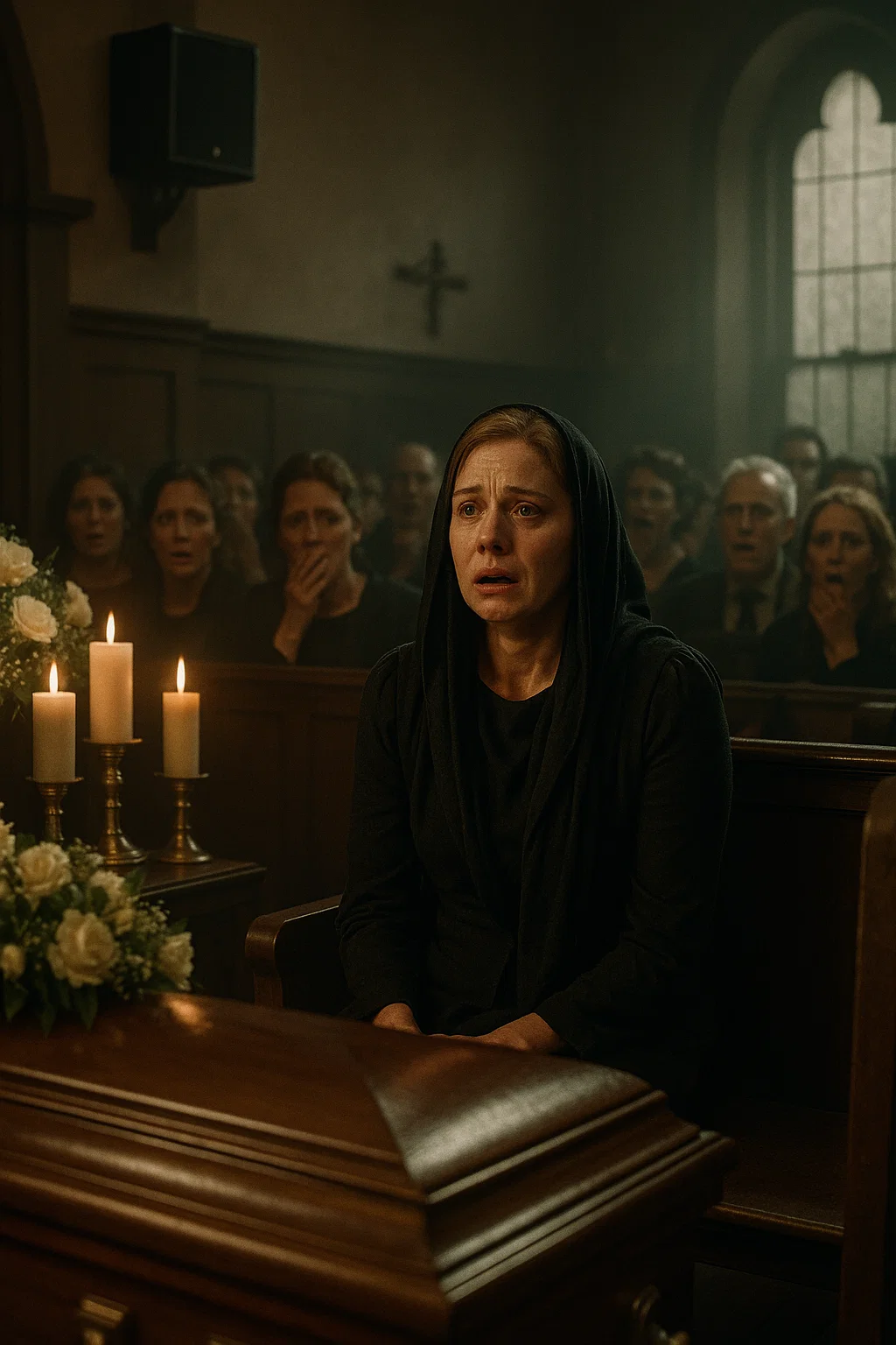 The air was thick with lilies and sorrow, the chapel dim except for the soft glow of candles around the casket. People filed out slowly, dabbing at their eyes, hugging one another tightly. I stayed seated in the front row, my hands clenched in my lap, unable to move. My husband was gone. The final words had been spoken, the hymns sung, the dirt waiting outside to cover him forever. I thought that was the end. But then the speakers crackled.