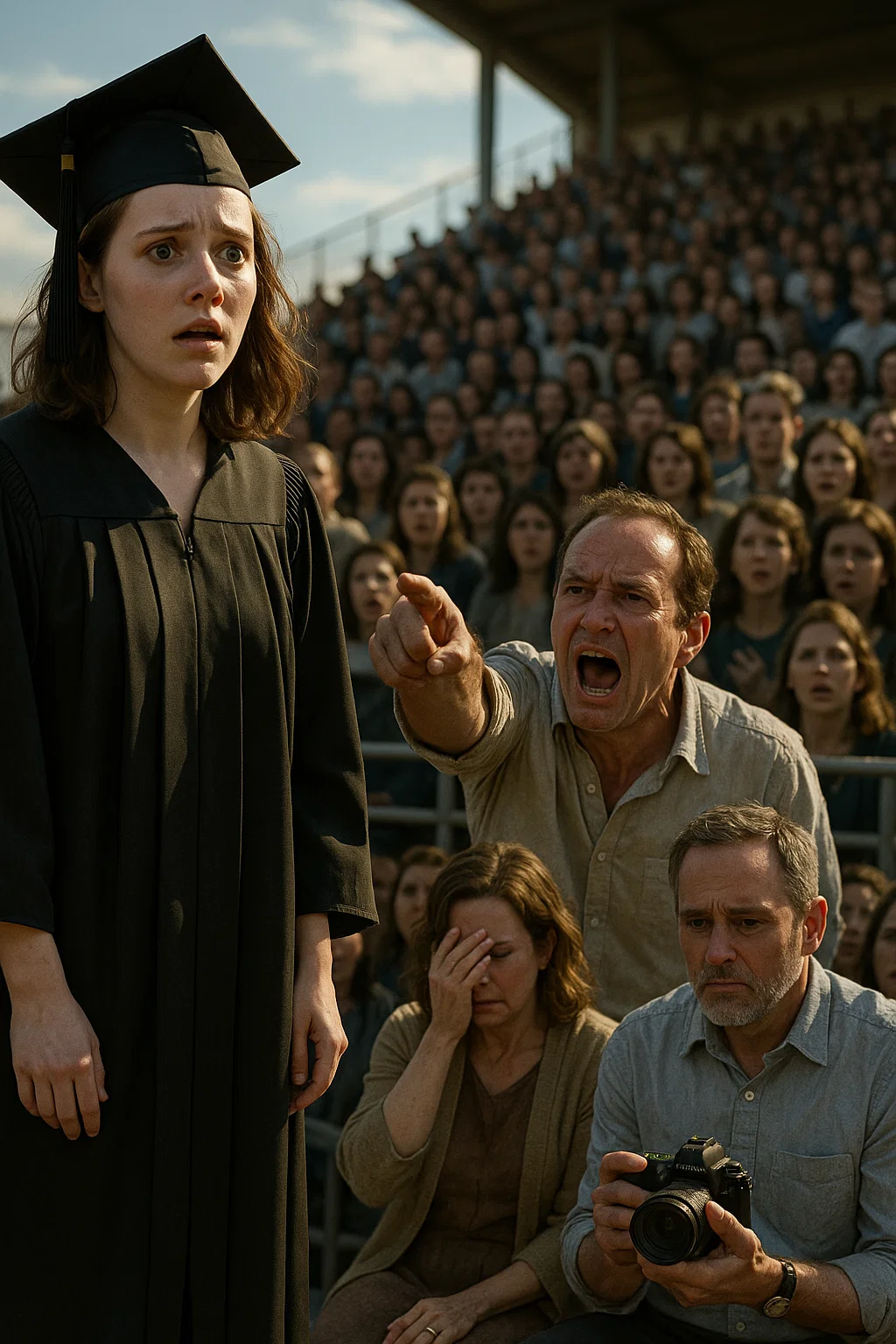 Graduation day was supposed to be about me. My gown rustled with every nervous step, the cap bobby-pinned tightly so it wouldn’t slide off my hair. The air was thick with the smell of hot asphalt from the stadium parking lot, mixed with the sweetness of roses clutched by proud parents. I scanned the bleachers until I found my family—my mom waving furiously, my dad snapping photos with tears in his eyes. I thought I knew who I was in that moment, the child of the man cheering for me. But just as my name was called and I crossed the stage, a voice rang out from the stands that made the entire stadium go still: “That’s my daughter!”