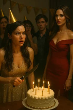 She stood there in a glittering red dress that hugged her like it was made for her sins. Her lipstick matched, too bright, too smug. I smelled her perfume before she even said a word—sickly sweet, the kind that lingers in the back of your throat like poison. She raised a glass, smiled, and said, “Happy Birthday.”