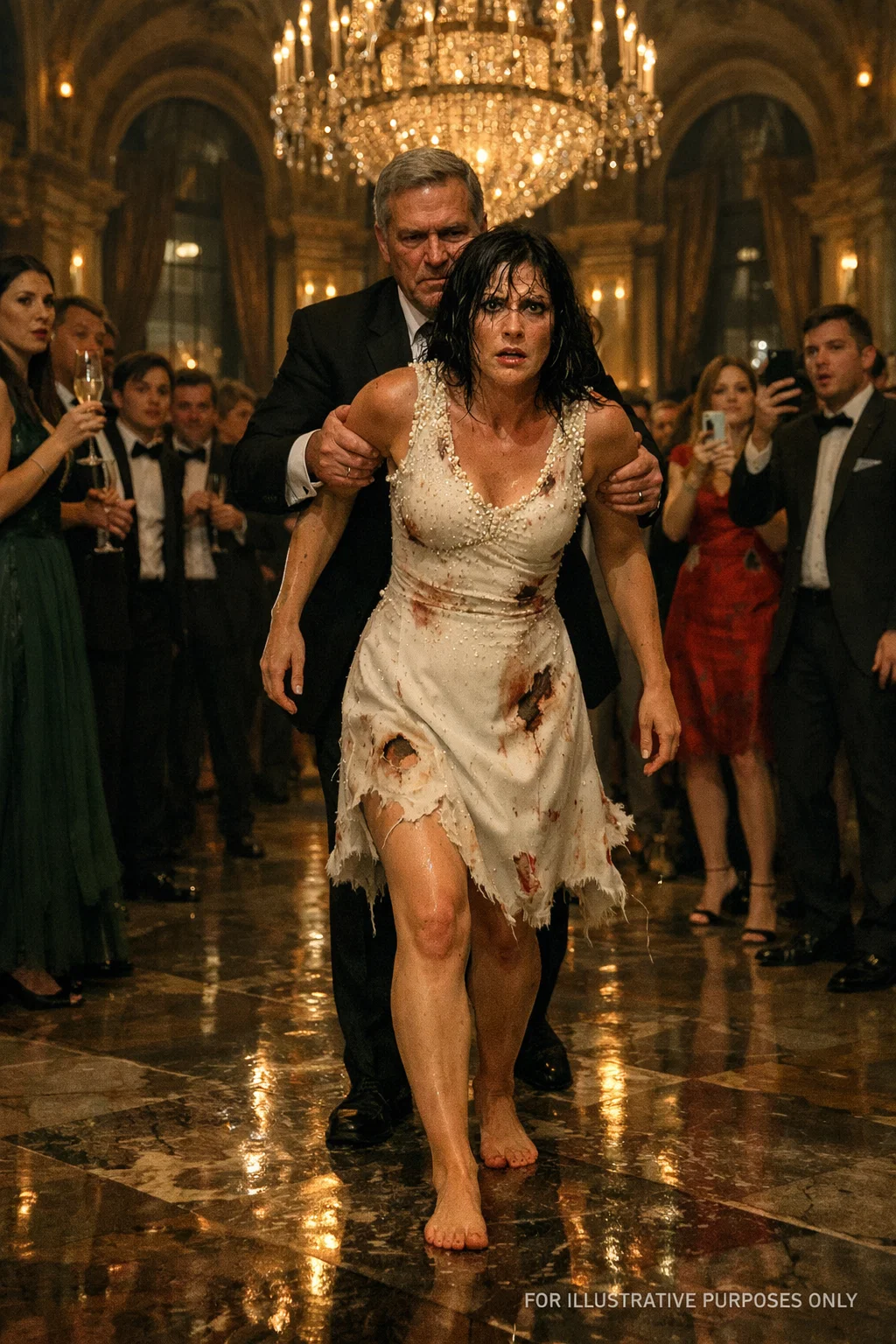 Emily stood in the center of the packed room. Her dress was torn. Her trembling hands tried to cover her body. Her face was pale, her eyes red, but what hurt me the most was not the tears—it was the absolute isolation in her gaze. More than two hundred people stood around. No one helped. No one intervened. There were only raised phones, prying eyes, and malicious whispers.