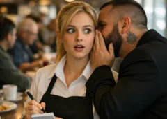 Catherine’s legs finally obeyed. She slid out of the booth, her notepad clattering to the floor. ran. The bathroom door slammed behind her. The small window beckoned, and in the alley below, a black Escalade waited with its engine running, driven by a ghost from a past she never knew existed.