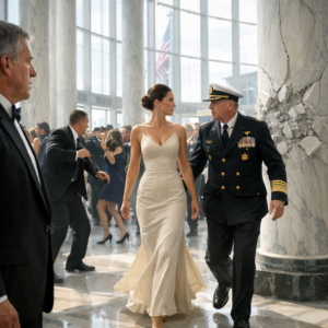 My eyes swept the room with a different kind of attention. I tracked movement, posture, weight distribution. A waiter moved too stiffly. A caterer held a tray of champagne flutes with hands too steady for someone balancing glass. His eyes weren’t on the guests. They were fixed on the mezzanine balcony, where Admiral James Vance—my former commanding officer and the keynote draw for the security detail—stood in conversation beneath a portrait of a dead president.